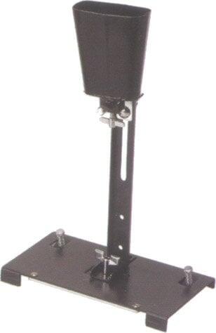 ütőhangszer tartozék: állvány kolomphoz és egyéb ütőhangszerhez, melyet lábgéppel vezérelnek, állítható magasság, acél konstrukció, 2 db menetes stabilizátor, a kolomp része a csomagnak, fekete szín