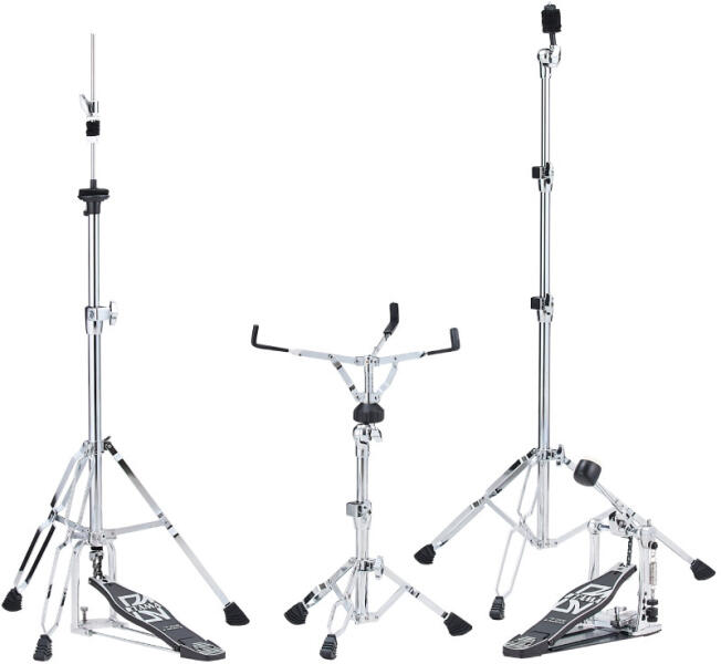 TAMA Standard Hardware Kit HC03W/HS03W/HP30P & HH03W A TAMA Standard Hardware Kit egy megbízható és stabil hardverkészlet, amely ideális választás kezdő és haladó dobosok számára egyaránt. A készlet minden alapvető állványt és pedált tartalmaz, amelyekre egy teljes dobfelszerelés összeállításához szükség van. Masszív acélszerkezete és minőségi kidolgozása biztosítja a hosszú élettartamot és a stabil játékélményt akár próbákon, akár színpadon. A csomag tartalma és specifikációk Lábdobpedál – HP30P